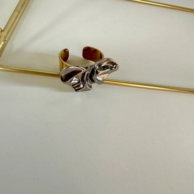 خاتم مميز جدا مكس ما بين اللون الدهبي والفضي فري سايز ستانلس ستيل عالي الجوده مقاوم للصدأ.
