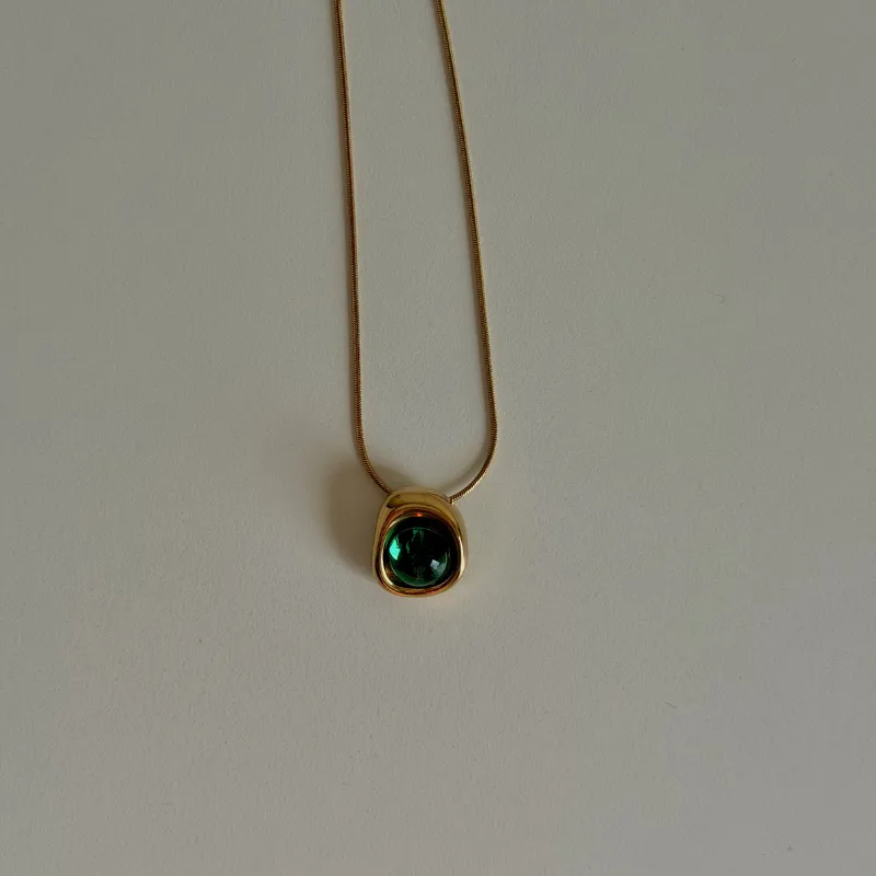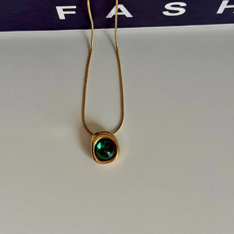 Elegant necklace adorned with a distinctive green stone, made of high-quality stainless steel that is resistant to rust. Length 20 cm with a 5 cm extension for easy size adjustment, perfect for daily wear and does not change color over time.