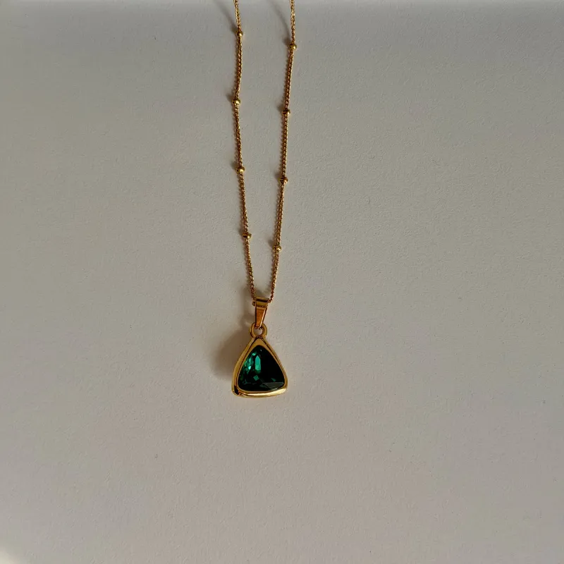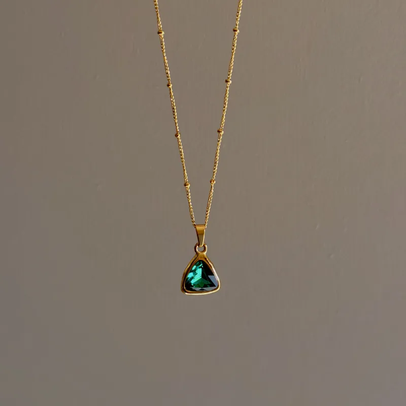 Elegant necklace adorned with a distinctive green stone, made of high-quality stainless steel that is resistant to rust. Length 22 cm with a 5 cm extension for easy size adjustment, perfect for daily wear and does not change color over time